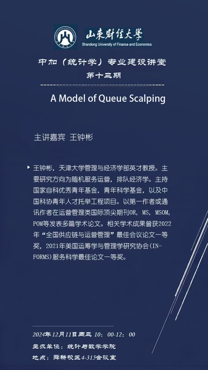 中加(统计学)专业建设讲堂第十三期——A Model Queue Scalping
