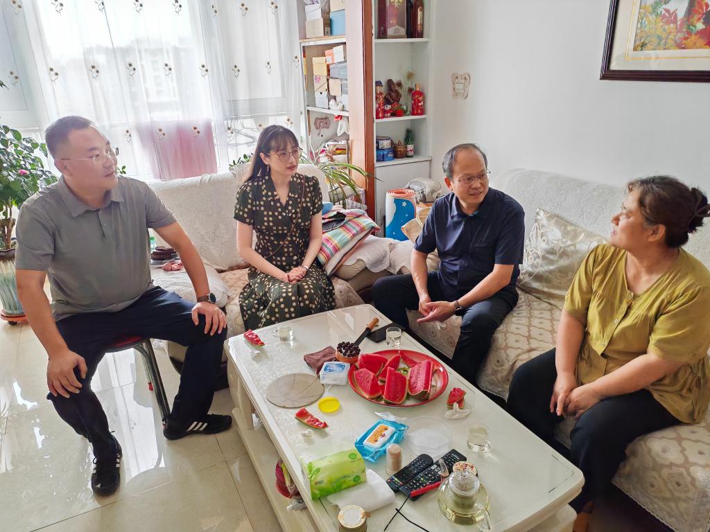 8月15日,注册送彩金的平台 党委副书记杨德嵋,学工办主任王京姝,辅导员彭增博一行到历城区王舍人街道走访慰问家庭经济困难学生。
