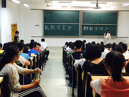 于B2111教室开展了数院学生会纳新宣讲会,大一新生代表、大二学生会代表以及大三主席团即学生会各部门部长参与会议。