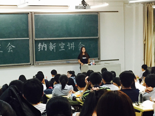 大会伊始,由数院大二负责人首先发表了关于欢迎新生同学以及鼓励新生同学们积极参与学生会竞选的讲话,紧接着,由大三主席团各部门的部长发表了纳新宣讲,内容包括各部门日常的工作内容事项,在学生会中承担的职责,也对即将参与竞选的新生同学们提出了建议和要求,对各自部门以往的工作成果进行了介绍,同时表现了对大一新生同学们的认可和期许,精彩的演讲赢得了同学们的热烈掌声,最后,由大二学生会各部副部长上台介绍各自部门,激励大一新生踊跃参与各部竞选,会场气氛十分活跃,随后大一同学提出疑问,各部门负责人以及大三学长学姐均给出了满意的答复,让新生同学们对学生会的工作有了更进一步的了解。