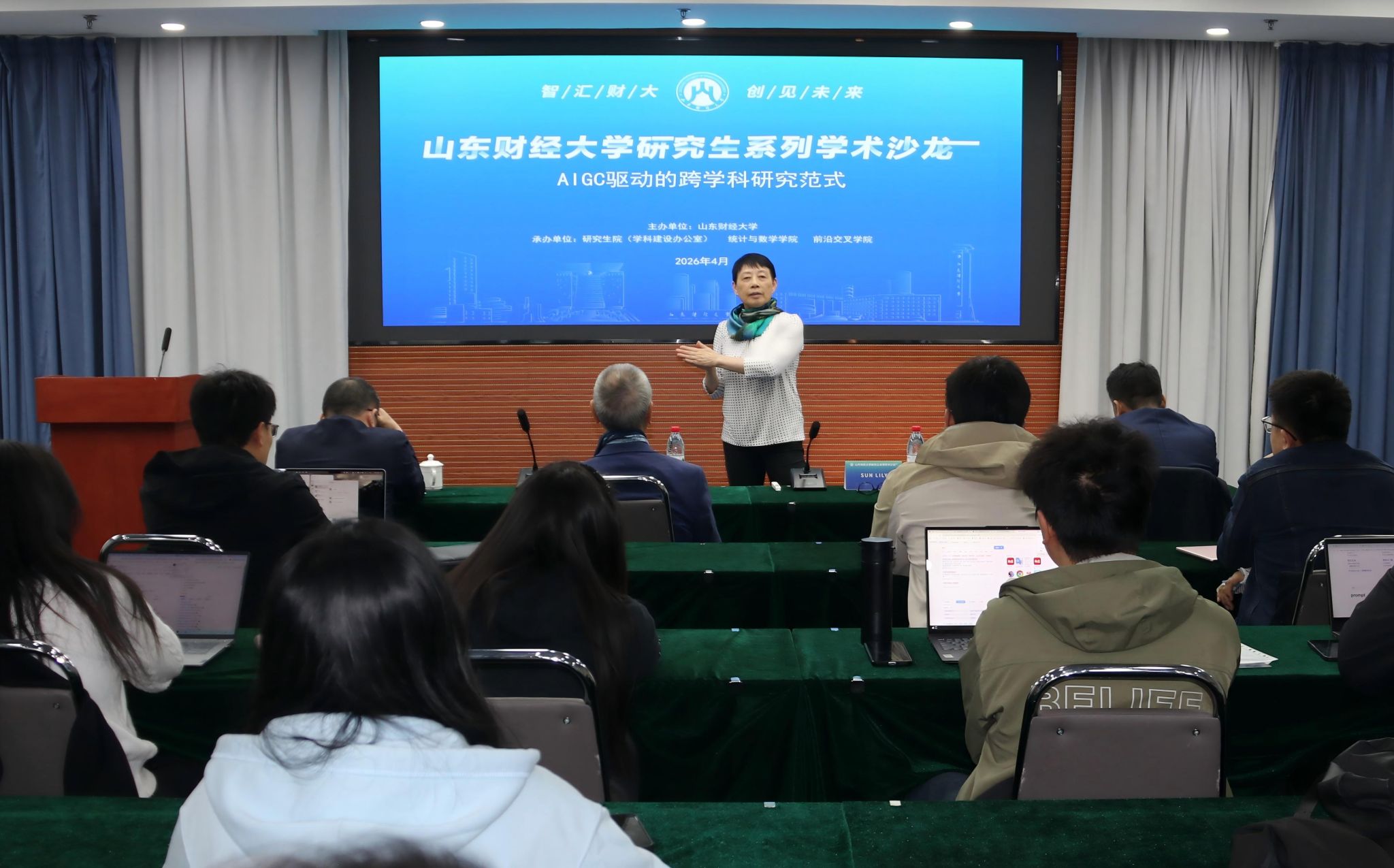4月9日下午,注册送彩金的平台 承办的研究生系列注册送彩金的平台 第九期在舜耕校区举行。本期沙龙聚焦“AIGC驱动的跨学科研究范式”,特邀英国雷丁大学亨利商学院数字人才学院院长LIU KECHENG、英国雷丁大学计算机科学系主任SUN LILY作主题报告。院长田金方主持活动。