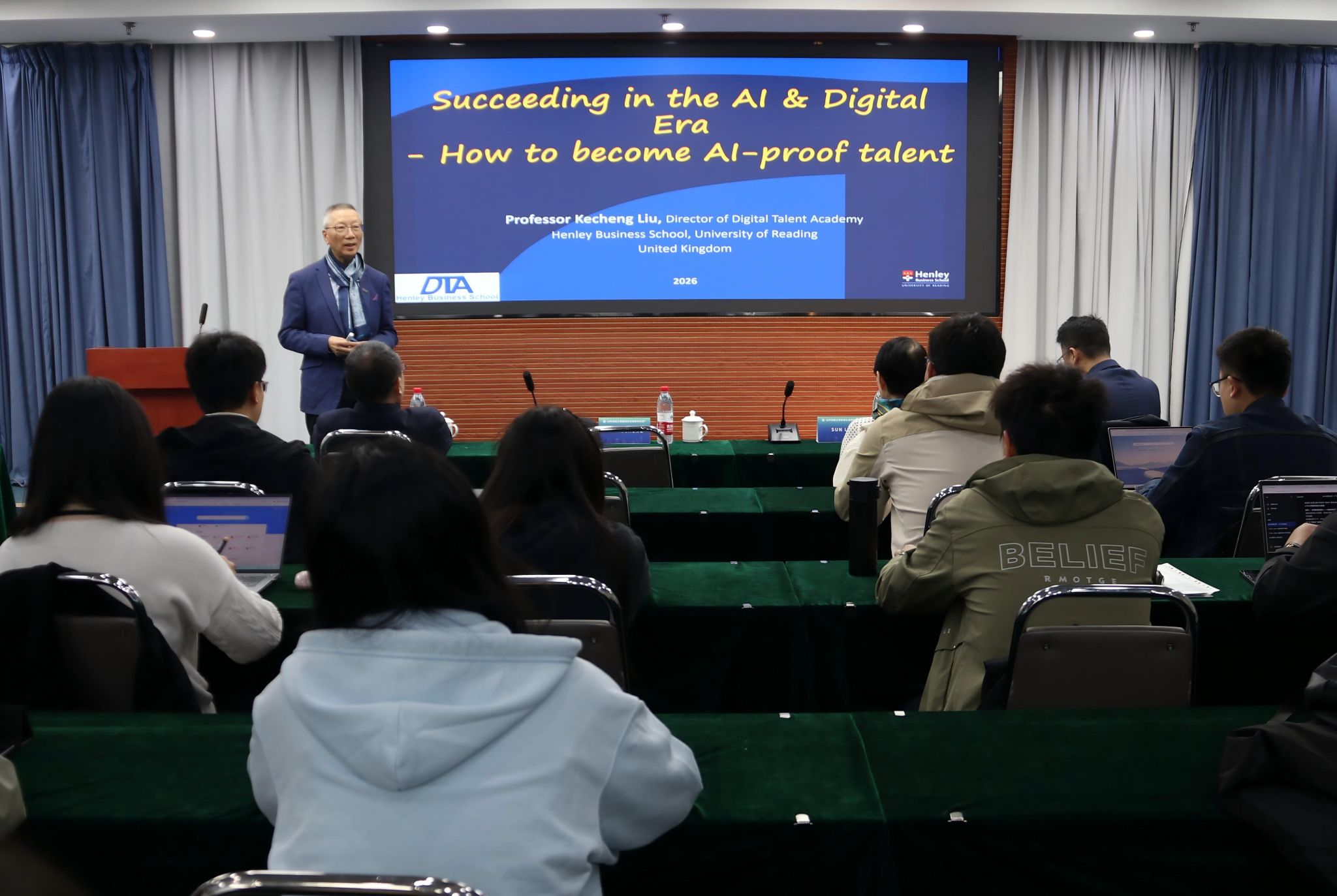 LIU KECHENG以“Succeeding in the AI and Digital Era: How to Become AI-Proof Talent”为题,从全球数字化变革的宏观视角切入,深入剖析了人工智能对高等教育与人才市场的双重冲击。他指出,面对AI在记忆与语言处理上的优势,人类的核心竞争力在于创造力、自我认知、文化敏感性及复杂问题解决能力。他强调,新时代人才培养应注重提升跨领域协同与沟通交流能力,通过构筑专业知识壁垒,提升数字技能,善用AI优势,打造适应未来竞争的高素质人才。