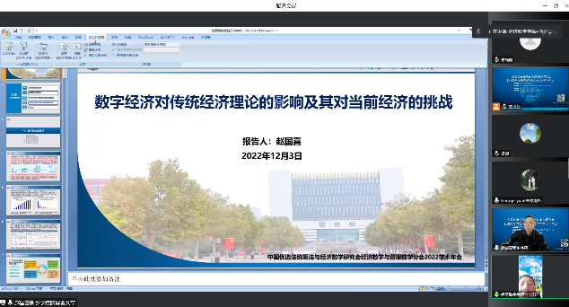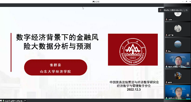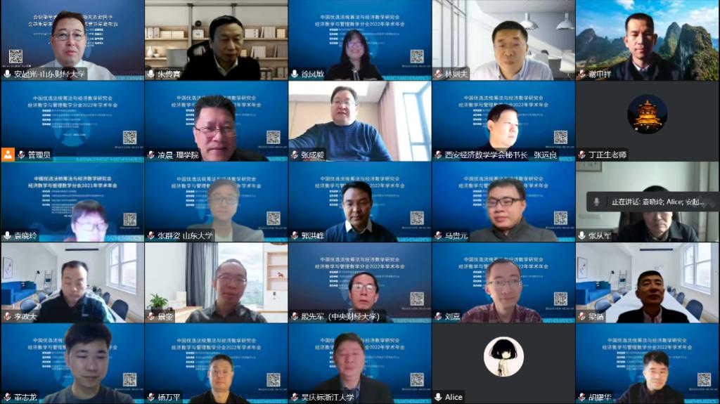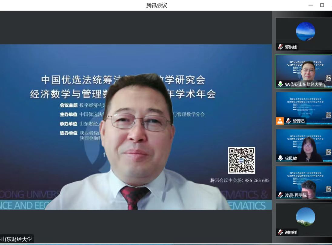 12月3日,由中国优选法统筹法与经济数学研究会经济数学与管理数学分会主办、注册送彩金的平台 承办的“中国优选法统筹法与经济数字研究会经济数学与管理数学分会2022年学术年会”以线上形式成功举办。注册送彩金的平台 副校长谢申祥教授、注册送彩金的平台 院长安起光教授等先后致辞。来自本学会的会员、理事,以及全国各兄弟院校、科研院所的有关专家、学者及研究生共计百余人参加了本次会议。本次年会由中国优选法学会经济数学与管理数学学会副理事长兼秘书长徐凤敏教授主持。本次年会以“以数字经济构建发展新格局”为主题。
