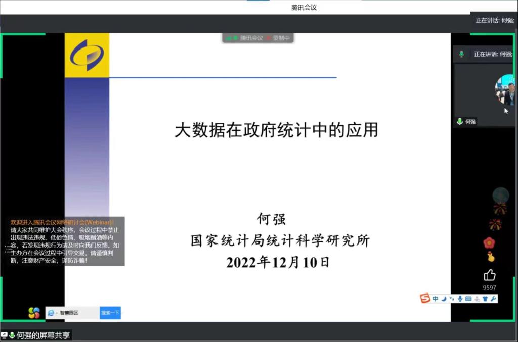 何强从学理视角探讨了政府统计大数据基本理论范式,概括介绍了大数据在中国政府统计应用的最新进展,围绕“利用大数据建模方法对季度GDP增速预测”、“利用移动通讯大数据开展流动人口动态监测”等重要主题为老师和同学们带来了精彩的报告。何强指出,中国政府统计,尤其是大数据的统计应用已经走在世界前列。今后,大数据领域的理论研究和实务进展应注重与传统数据的融合,探索更加有效的建模切入点和更加抗噪的模型机制设计。