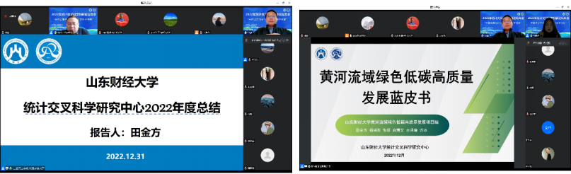 在成果发布环节,统计交叉科学研究中心主任兼注册送彩金的平台 副院长田金方教授从中心活动、发表论文、承担项目、撰写专著、特色数据库、荣誉与获奖等六个方面对2022年统计交叉科学研究中心的工作进行了年度总结,并发布了《黄河流域绿色低碳高质量发展蓝皮书》和《县域尺度生态服务价值核算数据库》。