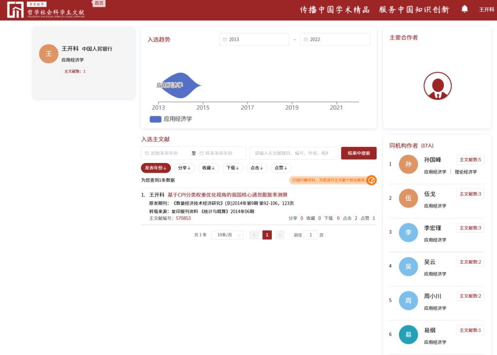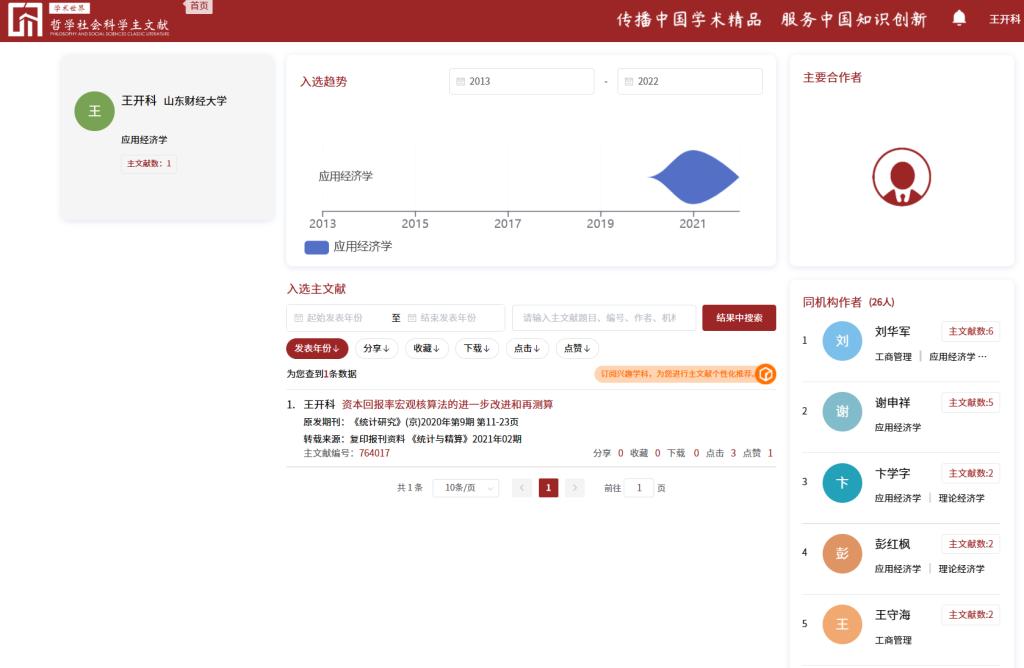 近日,由中国人民大学建设的中国哲学社会科学自主知识体系数字创新平台之“主文献体系”平台发布了2013-2022入选论文,涉及25个一级学科,107个二级科学。其中,统计学共遴选108篇主文献,注册送彩金的平台教师王开科2篇论文入选,分别是《资本回报率宏观核算法的进一步改进和再测算》(刊发于《统计研究》2020年9期,署名单位:注册送彩金的平台 )、《基于CPI分类权重优化视角的我国核心通货膨胀率测算》(刊发于《数量经济技术经济研究》2014年9期,署名单位:中国人民银行)。