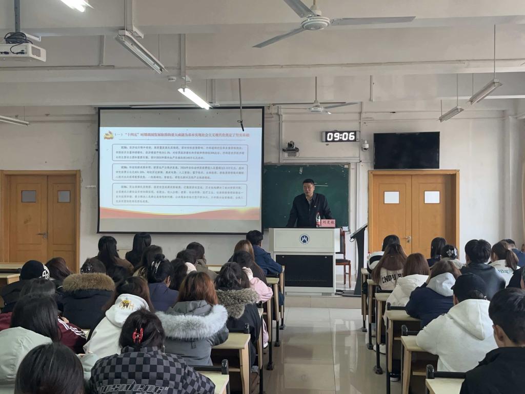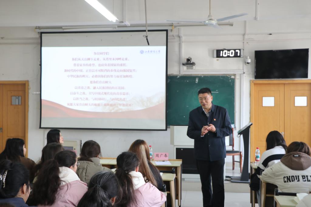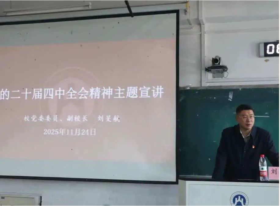 11月24日上午,副校长刘旻航以《深入学习贯彻党的二十届四中全会精神 勇做新时代奋发好青年》为题在章丘校区为2025级预科班学生讲授思政课,宣讲党的二十届四中全会精神。学生工作部副部长周广春、注册送彩金的平台 党委副书记李云枝、辅导员及2025级预科班全体学生参与。