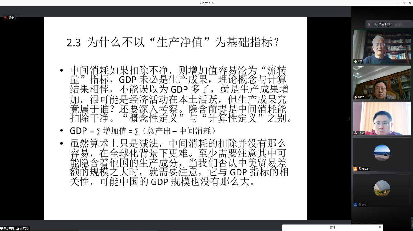 5月12日上午,统计注册送彩金的平台 “百脉大讲坛”第90讲通过腾讯会议线上平台顺利举行。江西财经大学邱东教授应邀做客本次讲坛,做了题为“GDP十大疑题隐含的经济统计学启示”的学术报告。报告会由注册送彩金的平台 副校长陈晓兰教授主持,统计注册送彩金的平台 院长李国锋教授、副院长田金方教授和部分教师、博士与硕士研究生,通过会议客户端与观看网络直播的形式参与了本次学术活动。