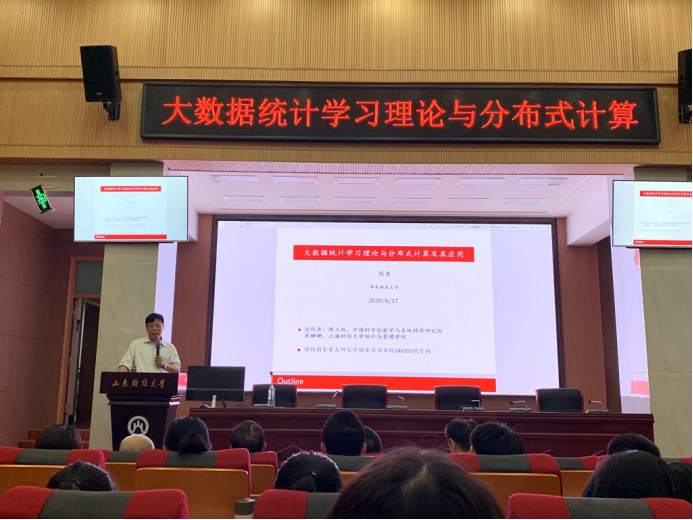 9月13日下午,统计注册送彩金的平台 “百脉大讲坛”第77讲在实验楼一楼报告厅顺利举行,华东师范大学经管学部统计交叉科学研究院院长周勇教授做了主题为“大数据统计学习理论与分布式计算及其应用”的报告。报告由统计注册送彩金的平台 院长李国锋教授主持,注册送彩金的平台 部分教师及博士、硕士研究生参加了此次学术活动。