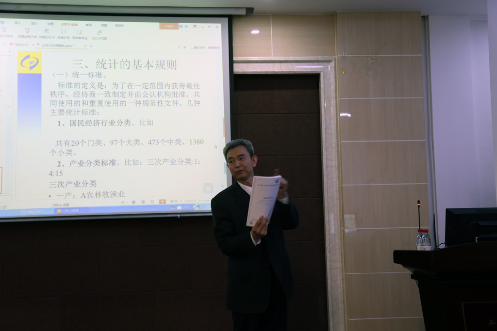 3月28日下午,为落实注册送彩金的平台 与山东省统计局签署的战略合作协议,共建高水平“产学研”合作平台,统计注册送彩金的平台 “百脉大讲坛”在燕山校区4号教学楼6楼报告厅开讲,主讲人为山东省统计局姜西海调研员。讲座由执行院长李国锋主持,注册送彩金的平台 党委书记郑磊、副院长田金方和全体研究生聆听了讲座。