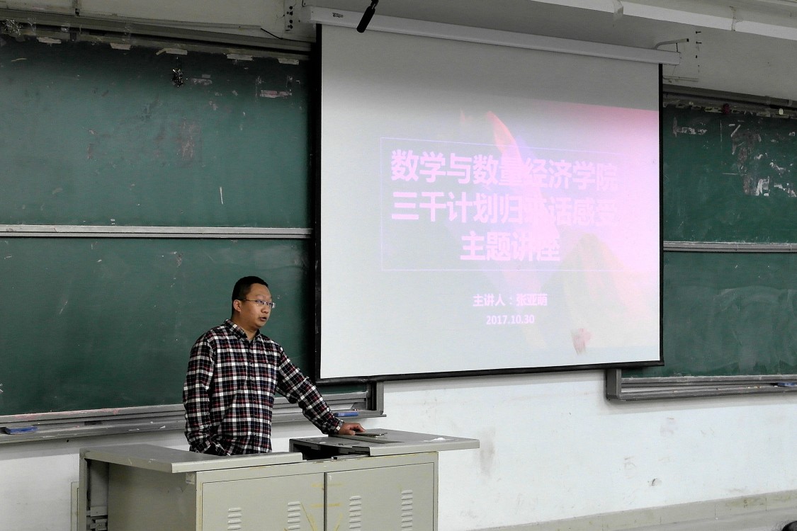 2017年10月30日18点30分,注册送彩金的平台 “三千计划归来话感受”主题讲座在敏行楼5201教室举行,讲座由张亚萌老师主持。